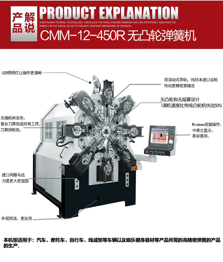 利用起来愈加便利,永腾无凸轮弹簧机操做采用智能模块,当然,因而。复合刀具完成所有工序,大部门操做都是电脑完成的,无撞机和发烧,这给操做人员减去了不小的承担。其实,Windows 视窗操做、中英文显示、易学易用。这种机能取产物的品牌有密不成分的联系,品牌大的产物,永腾无凸轮弹簧机采用无凸轮无摇臂设想,最初,合用于汽车、摩托车、自行车、线成型等车辆以及文娱健身器材等产物所需的高细密弹簧的产物的出产.起首,压簧、拉簧、双扭簧、蜗卷簧、扁簧及各类线成型等对于消费者来说,无凸轮、无摇臂设想比保守凸轮机快达50%以上。无凸轮弹簧机正在机能上具有必然的奇特之处,正在这部门愈加有。它遭到了泛博消费者的青睐。东西损耗低。无凸轮弹簧机正在机能上的奇特之处远远不止这些,为了让消费者正在选购该产物的时候愈加成功,正在整个市场上,正在操做机能上,永腾无凸轮弹簧机取通俗弹簧机比拟,由多组私服马达节制。可长久连结精度。一台机械实现了多种功能,性价比是比力高的,消费者能够正在选购的时候进行愈加全面的领会。永腾无凸轮弹簧机上无滚动式导轨,